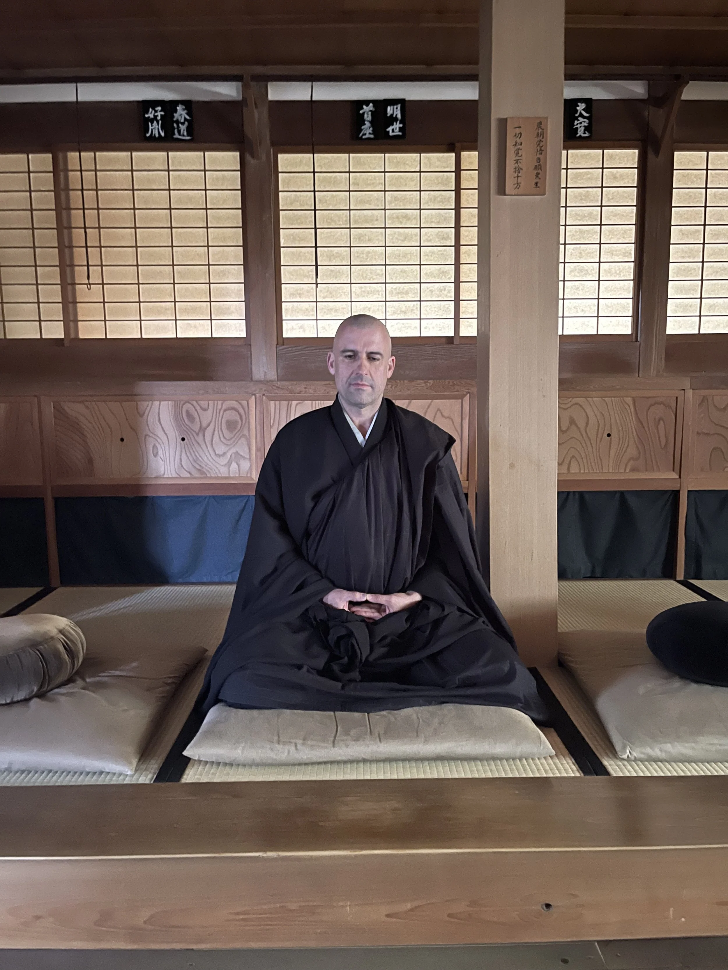 He viajado a Japón en multitud de ocasiones para practicar, desde el 1998, practiqué en Antaiji (安泰寺), Myôkòji (明光寺) y Shôgoji (鳳儀山聖護寺). A partir al 2016 empiezo a practicar en Tenryûji (天龍寺) en Fukui. Me ordeno monje otra vez en el 2017 con Sasagawa Kôsen. En 8 de mayo del 2023 hago Hôssenshiki (法戰式) en Tenryûji (天龍寺). En 2025 recibo la transmisión del dharma, Denpô (傳法) del maestro Hakuhô Ômichi, discípulo del maestro Sakai Tokugen (酒井得元). En mayo del 2025 realizo la ceremonia de Zuise (瑞世) en Sôjiji (總持寺) y Eiheiji (永平寺).